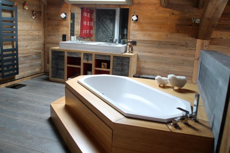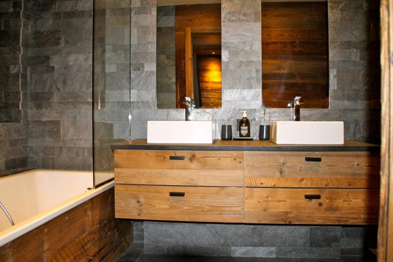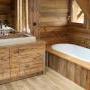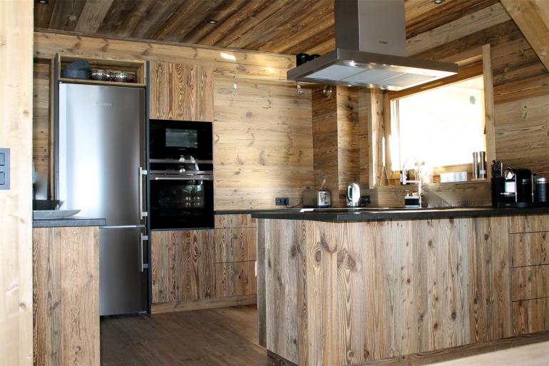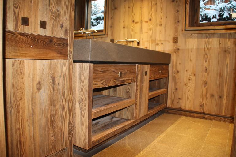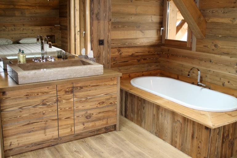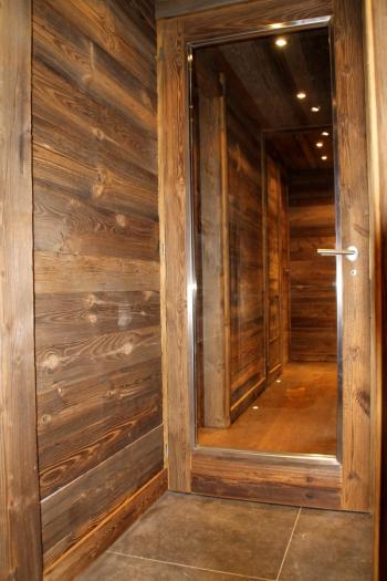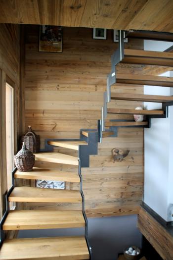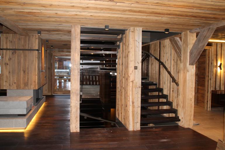 Les bois sont rigoureusement choisis pour que l'assemblage final procure une harmonie avec le chalet.